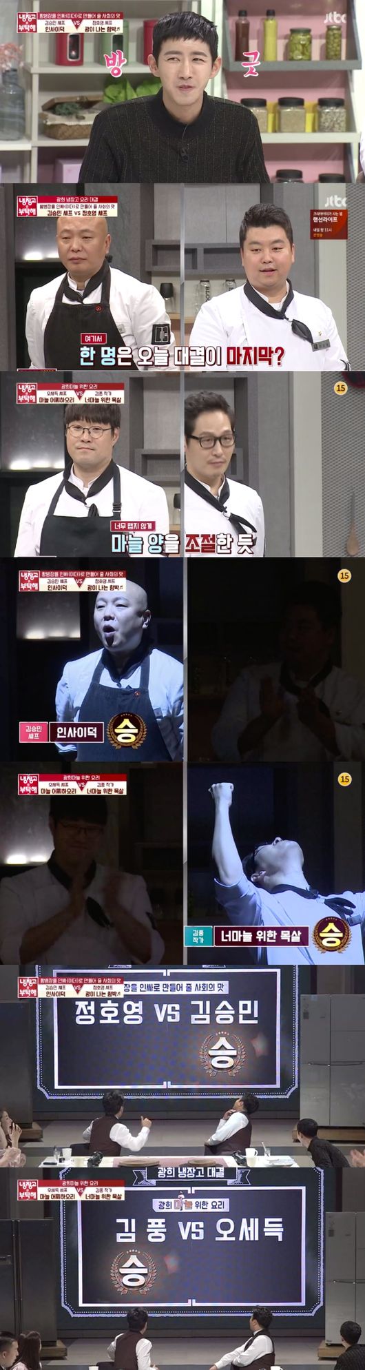 이어 광희와 친하다는 오세득 셰프와 김풍 작가의 대결이 이어졌다. 두 사람 모두 앞서 ‘1승’을 거뒀던 상황. 마늘을 주재료로 놓고 대결을 펼친 가운데 오 셰프는 ‘마늘 어찌하오리‘를, 김 작가는 ‘너마늘 위한 목살‘을 소개했다.