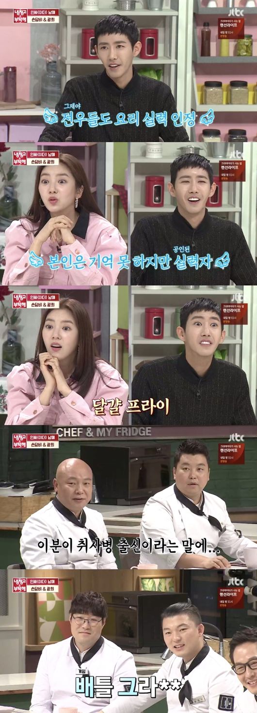 11일 방송된 JTBC 예능 ‘냉장고를 부탁해’는 ‘인싸 남매’ 특집으로 꾸며져 손담비와 광희가 출연했다. 지난주 손담비의 냉장고를 공개한 것에 이어 이날 광희의 냉장고가 공개됐다.