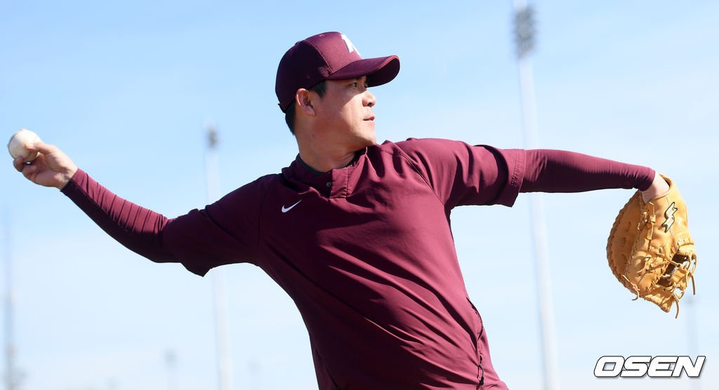 11일(한국시간) 미국 애리조나 피오리아 스포츠 컴플렉스에 스프링캠프를 차린 키움 히어로즈. 장정석 감독이 배팅볼을 던지고 있다.