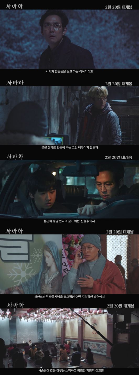 영화 ‘사바하’(감독 장재현, 제공배급 CJ엔터테인먼트, 제작 ㈜외유내강, 공동제작 필름케이) 측이 전에 없던 미스터리 스릴러를 완성한 배우들과 제작진의 남다른 노력과 열정이 담긴 제작기 영상을 공개했다.