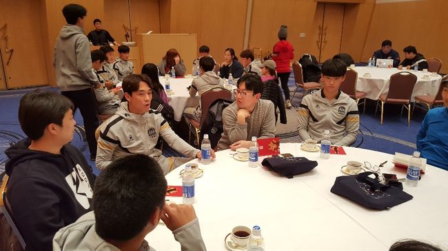 히로시마 연습경기를 관전한 팬 참관단은 저녁식사를 마친 뒤 선수단과 오븟한 시간을 보냈다. 직접 대화하기 힘들었던 선수들과 기념 사진도 찍고 사인도 받았다. 또 대화도 나누면서 즐거운 시간을 보냈다.