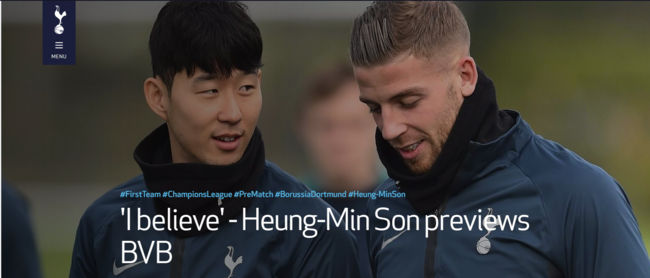 토트넘 구단 역시 '양봉업자' 손흥민의 존재를 주시했다. 토트넘의 공식 홈페이지는 도르트문트전 프리뷰에서 '키플레이어'인 손흥민의 인터뷰를 전했다.