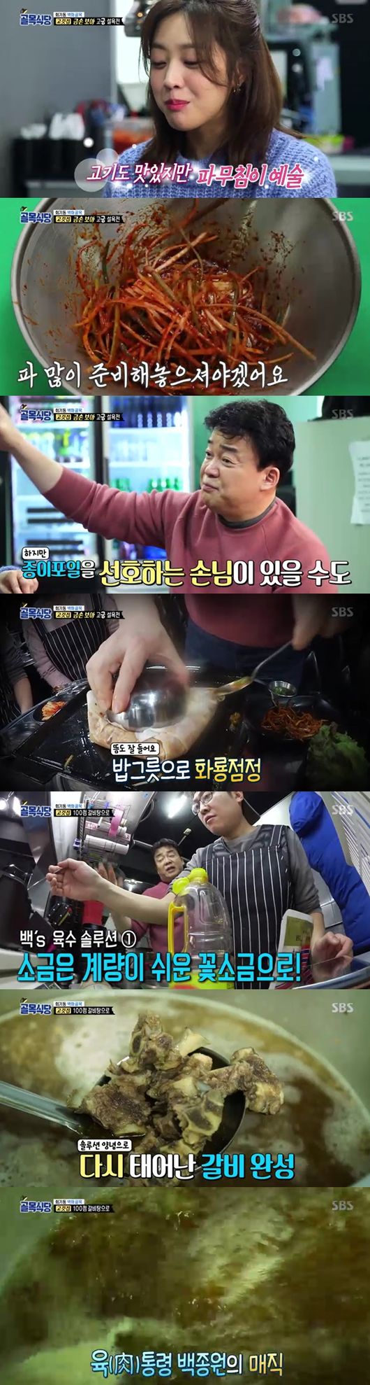 백종원은 삼겹살 시식 후, 셀프 볶음밥을 준비했다. 즉석에서 먹음직스러워보이는 볶음밥을 완성했다. 이어 고기와 함께 먹방, 조보아는 "고기와 밥도 맛있지만 파무침 정말 맛있다"고 감탄했다. 백종원은 비장의 소스비법까지 전하며 시그니처 소스를 전수했다. 그리곤 재료배합하는 법부터 육수만드는 솔루션까지 차례대로 팁을 전했고, 사장은 이를 꼼꼼하게 수첩에 받아적었다. 백종원의 매직으로 입맛을 잡는 육수가 완성됐다. 이를 맛 본 조보아는 "갈비탕의 끝판왕"이라며 두 엄지를 세울 정도로 감탄했다.