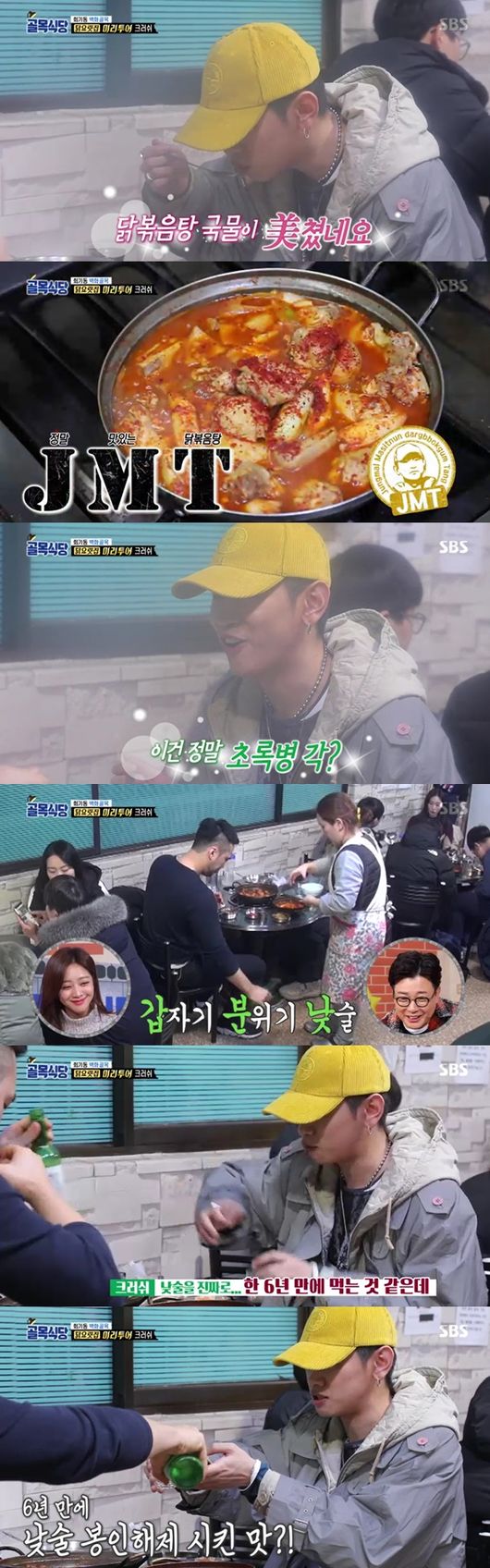 한편, 크러쉬가 닭볶음탕 마니아라며 닭요릿집을 직접 찾은 모습이 그려졌다. 골목식당 애청자는 물론 백종원의 팬이라고 했다. 크러쉬가 30분 기다린 끝에 식당에 입장했다. 크러쉬는 첫회 지적한 사항까지 모두 알면서 본방사수한 모습이 그려졌다. 이어 음식을 영접, 원샷으로 카메라를 잡았다. 이어 "진짜 맛있다"며 맛에 감탄했다.크러쉬는 "엄마가 떡볶이 해준 맛이 생각난다"며 추억속의 맛이라 평가했다. 국물을 마시며 "WOW"만 외치면서 "진짜 거짓말이 아니다, 국물이 정말 깊다, 국물이 미쳤다"며 먹방에 빠졌다. 달달하면서 얼큰한 맛이라고. 급기야 낮술 분위기까지 이어가 웃음을 안겼다. 크러쉬는 "낮술을 6년만에 먹는 것 같다"면서 6년만에 낮술을 봉인해제 시킬 정도로 끝판왕이라고 했다.