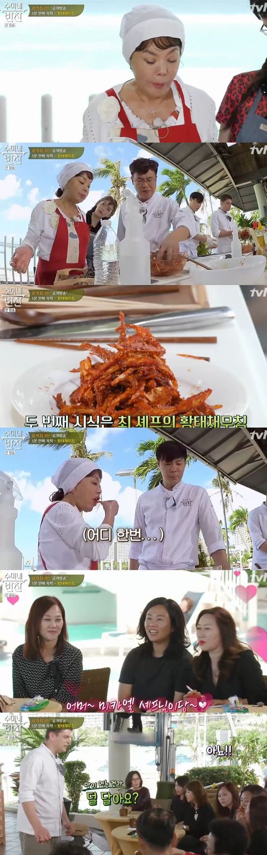 김수미가 "오늘은 괌에서 오래 사신 교민들을 모시고 반찬 비법을 전수할 것이다. 현지 셰프가 와서 괌 요리도 알려줄 예정이다"라고 전했다.