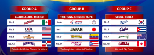 B조=대만(4위) 일본(1위) 베네수엘라(9위) 푸에르토리코(11위)
