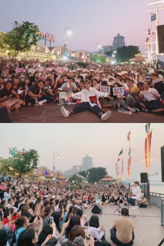 우선 렌은 버스킹 진행 전 개인 SNS 계정을 통해 ‘Meet me at 6:30PM today (Thailand time) in Asiatique ! I have a surprise for you’라는 문구를 깜짝 게재, 팬들과의 특별한 만남을 준비했음을 알려 폭발적인 반응을 얻었다. 특히 렌의 버스킹은 당일 기습 공지됐음에도 불구하고 개최 전부터 공연 장소에서 그를 기다리는 팬들로 인산인해를 이뤄 글로벌 대세돌의 저력을 보였다.