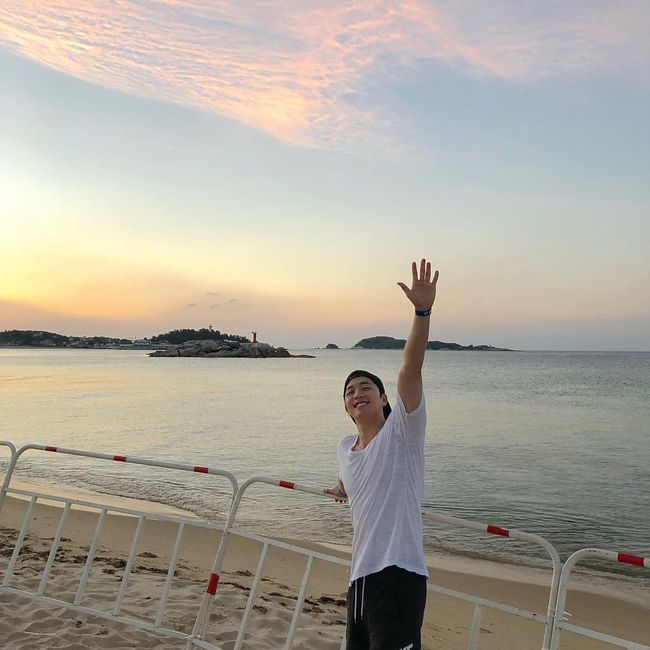 공개한 사진 속 이현진은 노을 진 하늘을 배경 삼아 포즈를 취하는 중이다. 그는 푸켓과 'SKY캐슬'에 안녕을 고하는 듯한 자세로