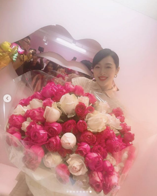 또 다른 사진에는 핑크빛으로 장식된 방에서 즐거워하는 설리의 모습이 담겨 있다. 또 설리는 커다란 꽃다발을 안고 미소 짓는 등 청순한 매력으로 시선을 사로잡고 있는 모습이다.