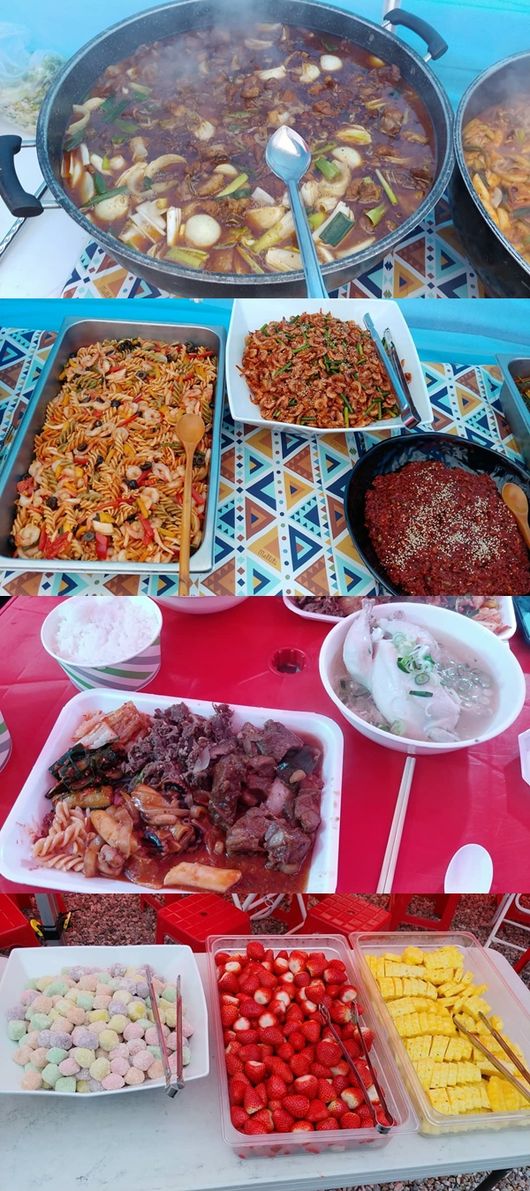 공개된 사진에는 아이유가 보낸 밥차가 제공하는 만찬들이 담겨 있다. 삼계탕, 불고기 등으로 구성된 상차림은 보는 이의 침샘을 자극한다. 이 뿐만 아니라 딸기, 파인애플 등 후식으로 먹을 과일까지 준비돼있다. 절친 유인나를 위한 아이유의 마음이 느껴진다.