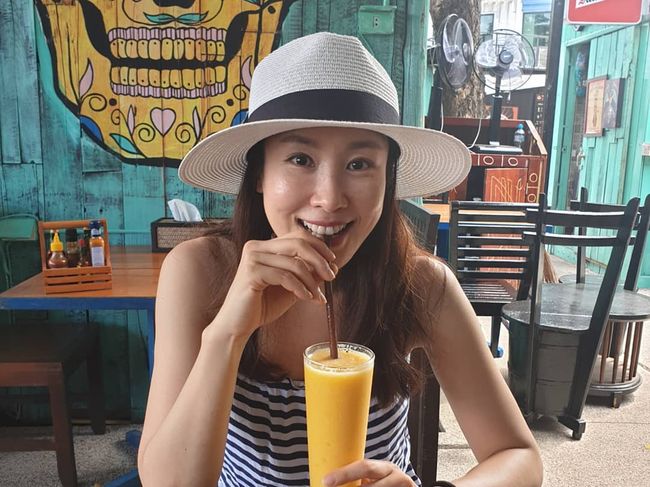 공개한 사진 속 이태란은 'SKY캐슬' 포상휴가로 떠난 태국 푸켓에서 여행을 만끽하고 있는 모습이다. 그는 챙이 넓은 밀짚모자와 스트라이프 패턴의 민소매 상의로 휴양지 패션을 완성했다. 그는 해맑은 표정으로 음료를 마시면서 휴가를 즐기는 중이다.