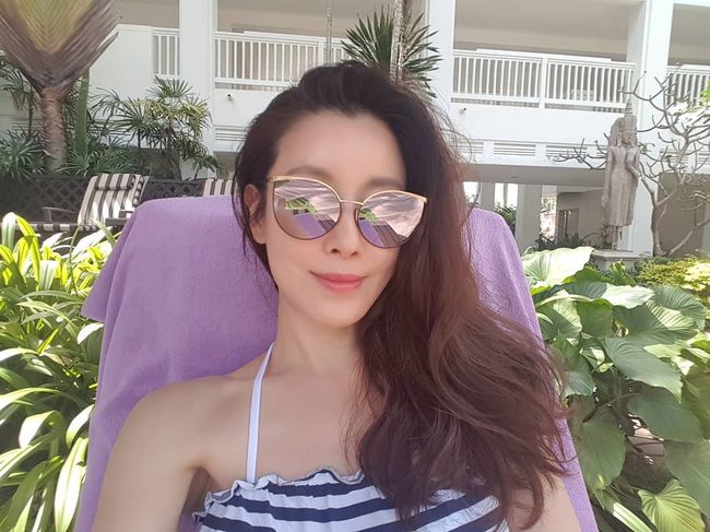 또 다른 사진에서의 이태란은 수영복을 입고 일광욕을 하고 있다. 이때 이태란은 선글라스를 착용했음에도 매력이 넘치는 미모를 자랑해 눈길을 끈다.