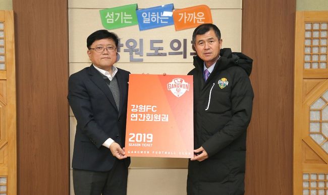 한금석 의장은 14일 강원도의회에서 2019 강원FC 연간회원권을 구매하면서 “올 시즌 강원FC에 대한 기대가 크다. 지난해와 달라진 모습을 보여주길 바란다”고 당부했다.