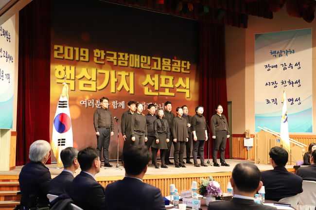 ㈜뉴딘파스텔(대표이사 한태정)의 ‘골프존파스텔합창단’은 지난 13일 경기도 성남시 분당구의 한국장애인고용공단 본부에서 열린 ‘2019 한국장애인고용공단 핵심가치 선포식’에서 성황리에 초청 공연을 펼쳤다.