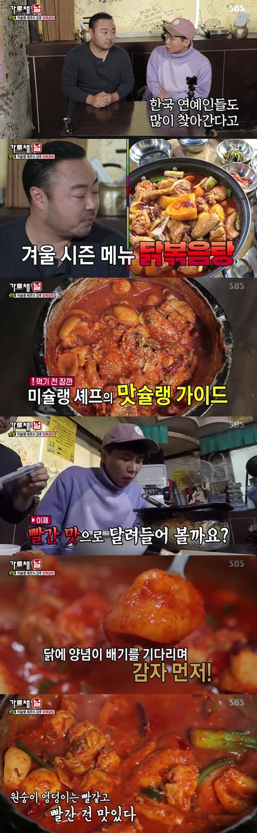 뉴욕 최초 한식 미슐랭 셰프들이 추천한 닭볶음탕이 나왔다. 치명적인 비주얼부터 시선상탈이었다. 특히 태국고추까지 들어있어 더욱 매운맛을 예고했다. 본격적으로 시식을 시작, 셰프는 "감자를 먼저 먹는다"면서 닭안에 양념이 더 배기를 기다리기 위해 감자부터 먹는다고 팁을 전했다.