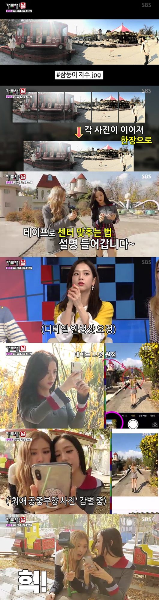 다음은 공중에 떠있는 사진들을 모아 이어 붙인 점프사진이었다. 점프를 하는 동안 연사로 촬영버튼을 누른 후 공중에 뜬 사진을 이어 붙이면 끝이었다. 공중 부양까지 가능한 사진 꿀팁이었다. 센터를 맞추기 위해 테이프로 정중앙을 맞추는 것이 포인트라고 했다. 베스트 점프샷으로 사진을 선택, 최애 공중 부양사진들을 선택해 여러장을 골라 이어 붙였다.