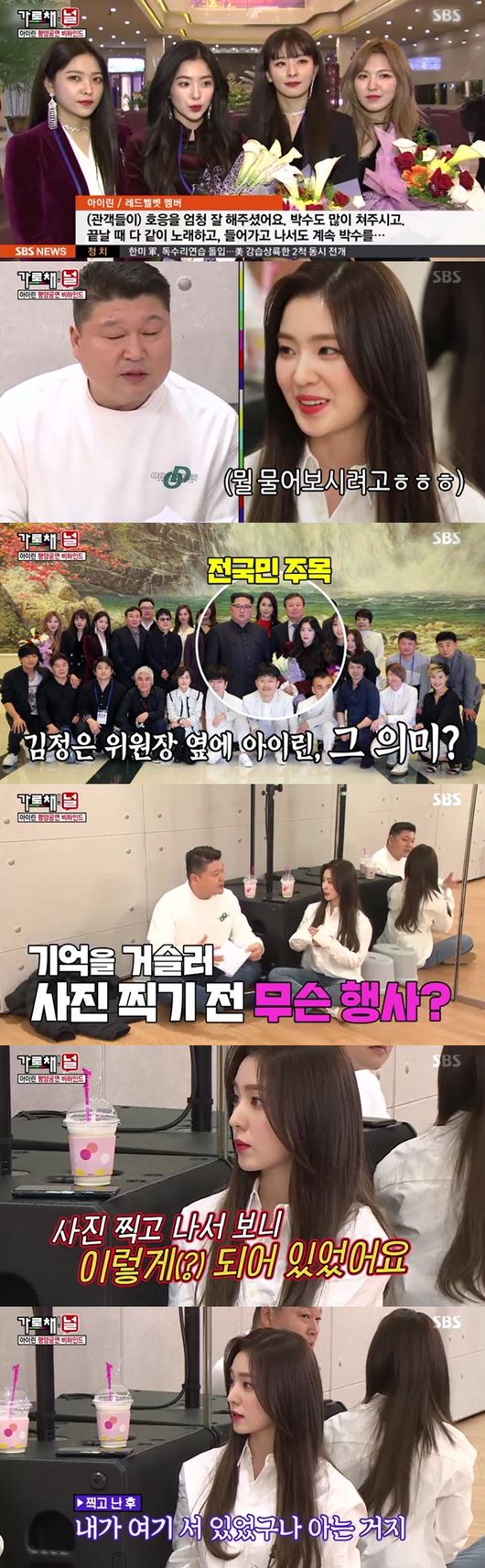 다음은 예술단으로 평양에 간 레드벨벳을 언급, 김정은 위원장 옆에서 단체사진을 찍은 아이린을 언급했다.