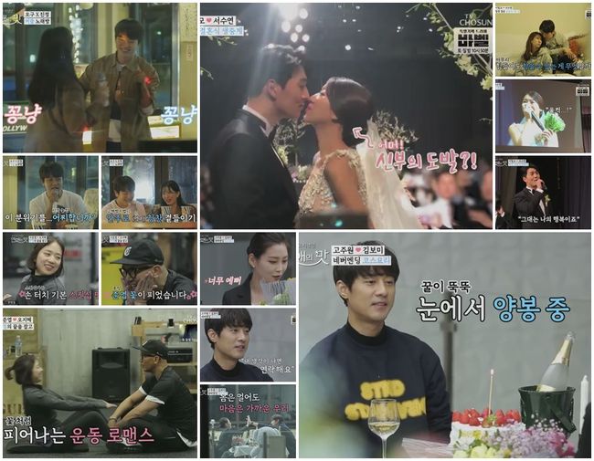 진정한 부부가 된 이필모-서수연의 기적 같은 웨딩마치, 김보미의 취업을 축하하기 위해 생애 첫 코스 요리 이벤트를 펼쳤던 고주원, 꽁냥 초절정의 커플댄스를 췄던 김정훈과 김진아, 헬스장에서마저 설렘을 폭발시킨 구준엽과 오지혜가 담기며 같이 있기만 해도 어디서든 행복해지는 ‘연애의 감동’을 폭발시켰다.