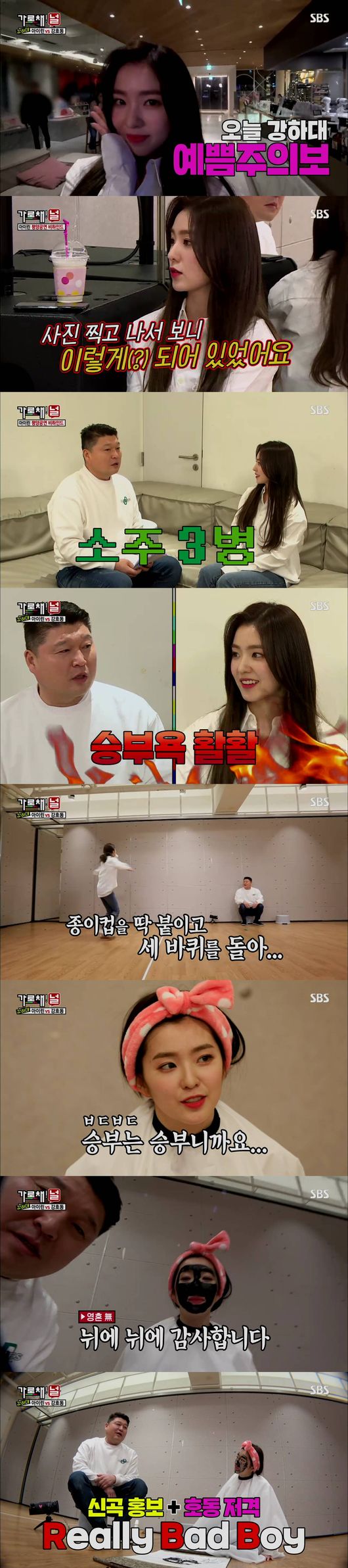 얼굴 탁본 벌칙을 받기 전, “안 하면 안 되냐. 팬들에게 공격받는 거 아니냐”며 미안해하는 강호동에게 아이린은 “그럴 일은 없다. 승부니까요”라며 떨리는 목소리로 답해 웃음을 안겼다. 결국 아이린은 얼굴 탁본 벌칙을 받았고, “리얼리 배드 보이(Really Bad Boy)”라며 탁본에 ‘RBB 강호동’이라고 적어 현장을 웃음바다로 만들었다.