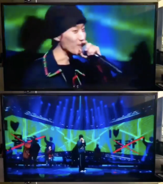 그러나 본 방송에서는 "여잘 왜 혐오해 (no no no), I'm feminist(u know)"라는 가사와 함께 몰카 문구가 등장했고, 엑스(X) 표시는 보이지 않았다. 편집 과정에서 사라진 것으로 추측된다.