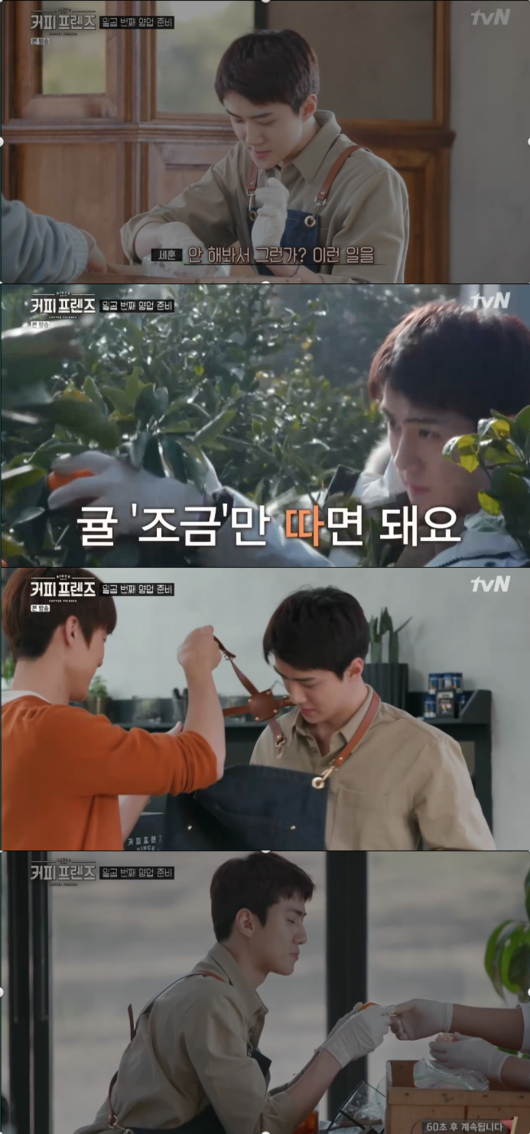 세훈은 영업 준비를 하면서 귤을 까고 또 깠다. 오세훈은 속껍질 하나도 남기지 않고 섬세하게 귤을 깠다. 오세훈은 생애 처음으로 ‘커피프렌즈’에서 알바를 경험하는 것이었다. 오세훈은 열심히 귤을 깐 뒤에 곧 귤을 따러 갔다. /pps2014@osen.co.kr