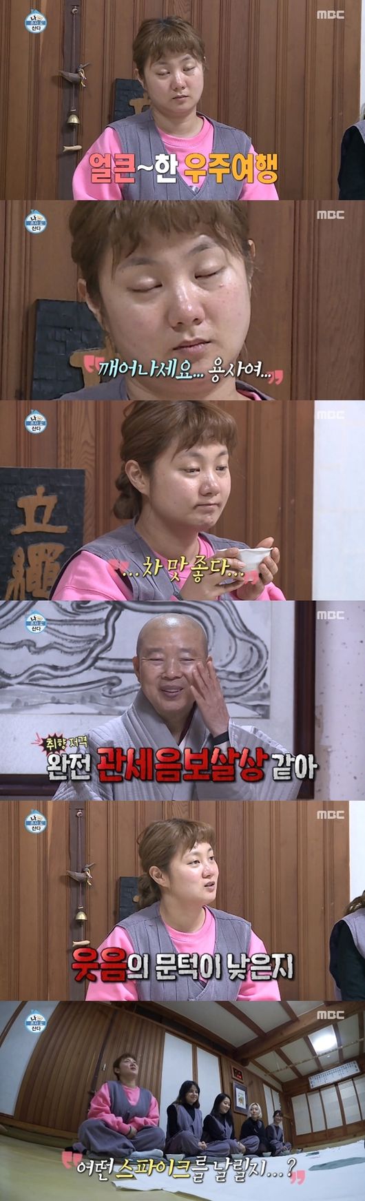 박나래가 조는 것을 눈치챈 스님은 모두를 깨웠다. 스님은 연꽃 차를 나눠주고 참여자들과의 담소를 진행했다. 박나래는 여전히 졸음에서 헤어나오지 못했다. 스님은 반쯤 눈이 감긴 박나래를 보고 "관세음보살상 같다"고 말해 폭소케 했다.