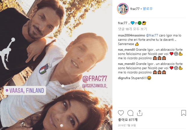 영국 '미러'는 16일(한국시간) "로마의 유망주 자니올로는 자신의 어머니에게 자꾸 인스타그램 셀카를 올리지 말 것을 당부했다"고 보도했다.