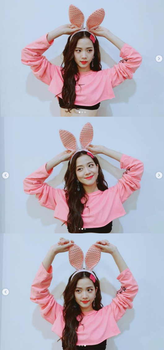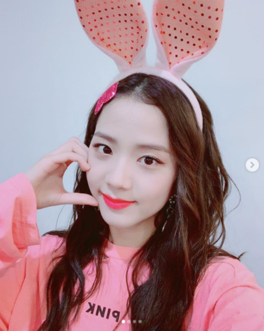 공개된 사진에는 핑크색 맨투맨 티셔츠를 입고 밝은 미소를 짓고 있다. 지수는 사랑스러운 미모를 뽐내고 있다. 토끼 귀모양의 장신구를 하고 팬들을 향해 ‘하트’를 보내며 애정을 드러내고 있는 모습이다.