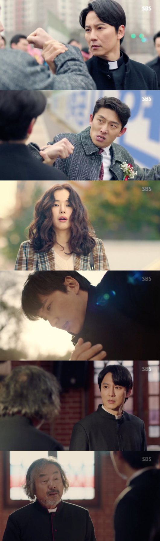 해일은 행패를 부리는 조직 폭력배들까지 똑같이 신자로 대하는 구담성당의 주임신부 이영준(정동환 분)의 뜻을 이해하지 못하고 갈등을 빚었다. 하지만 영준이 사라지고 다음날 시신으로 발견되자 해일은 충격에 빠졌다.