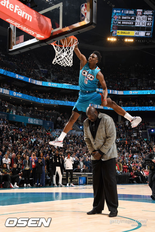 2019 NBA 올스타 전야제가 17일 미국 노스캐롤라이나주 샬럿 스펙트럼 센터에서 개최됐다. NBA 최고의 별들이 모두 모인 축제였다. 올스타전의 꽃인 덩크슛 대회에 존 콜린스(애틀란타), 하미두 디알로(오클라호마시티), 데니스 스미스 주니어(뉴욕), 마일스 브릿지스(샬럿) 신예들이 출동했다.