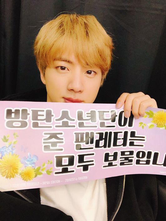 방탄소년단 멤버 진이 일본 투어 중 팬들에게 셀카 선물을 남겼다.
