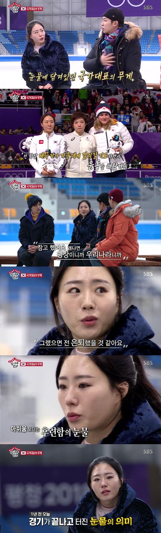이상화 선수는 "평창 올림픽 가장 힘들었다, 좋은 기록을 보답드리고 싶었는데, 마지막 구간에서 속도가 죽는걸 느꼈다"면서 부상을 딛고 도전했던 올리픽이었기에, 한 순간 실수가 아쉬웠다며 힘들었던 경기라 전했다. 터져버린 눈물의 의미에 대해서도 이상화 선수는 "은메달을 따서 아쉬워 운게 아니다"고 했다. 아쉬움과 후련함의 눈물이었다고. 이상화 선수는 "평창에서는 꼭 우리나라 관중들과 환호하자고, 울지말자 결심했던 경기, 하지만 또 울어버렸고 울지말란 관중의 위로에 누물이 터져나왔다"고 했다.