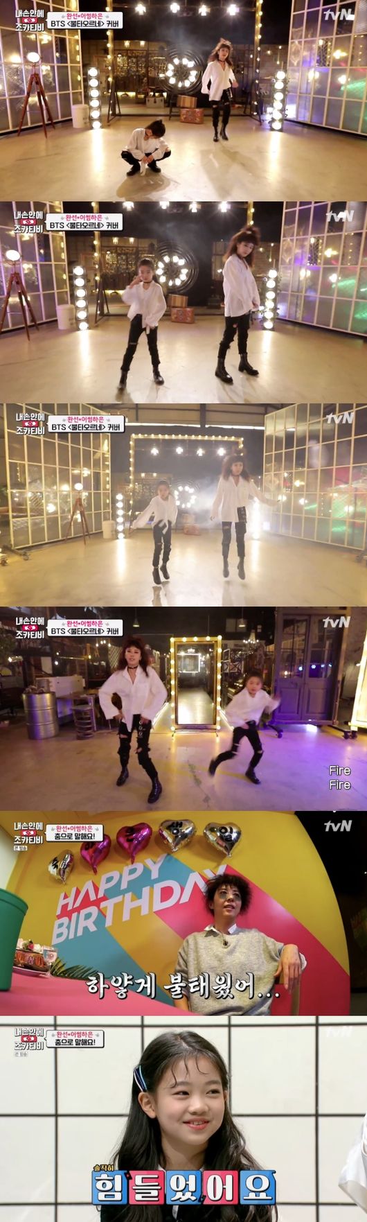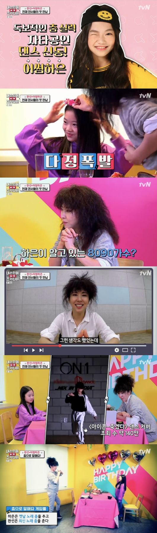 17일 첫 방송된 tvN 예능 ‘내 손 안에 조카티비’에서 김완선과 나하은이 그룹 방탄소년단의 커버 댄스에 도전하는 과정이 그려졌다.