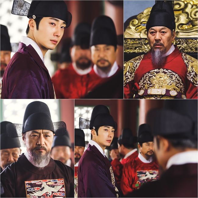 오늘(18일) 공개된 스틸에서 정일우는 신료들이 한데 모인 편전에 모습을 드러냈다. 특히 이경영을 바라보고 있는 모습이 냉소를 띈 데다 눈빛까지 의미심장해 궁금증을 자극한다. 그런가 하면 감정을 드러내지 않던 이경영은 동공 지진을 일으키며 정일우에게 시선을 고정하고 있다. 두 사람 사이에 팽팽한 기싸움이 펼쳐지며 편전 안에 숨막히는 긴장감이 흐른다.