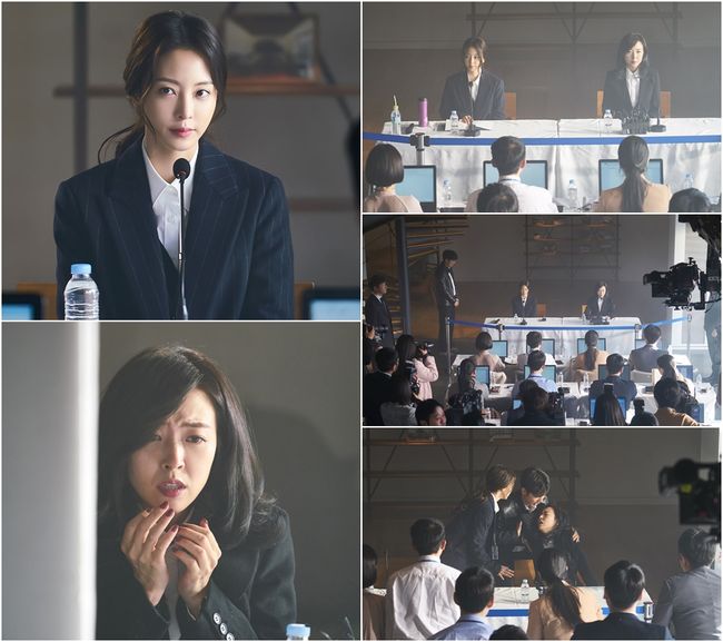 이와 관련 한예슬과 심은진이 극과 극 표정을 드리운 채 기자회견에 나선 모습이 공개돼 이목을 집중시키고 있다. 극 중 블랙 세미 정장을 맞춰 입은 기자 지수현(한예슬)과 여배우 오채린(심은진)이 수많은 취재진 앞에 앉아있는 장면. 담담한 표정의 지수현과 달리 오채린은 억울한 표정으로 문서를 읽어 내려가다 결국 감정이 격해진 듯 눈물을 흘린다. 더욱이 이내 다가온 매니저에게 귓속말을 듣고 충격을 받은 듯 기절하고 마는 것. 이에 놀란 지수현의 모습이 펼쳐지면서, 두 사람이 어떤 극한의 사건에 맞닥뜨리게 된 것일지 호기심을 자아내고 있다.
