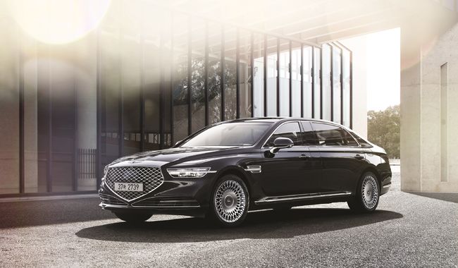 제네시스 브랜드(이하 제네시스)가 19일 G90의 리무진 모델을 출시했다. 290㎜의 더 길어진 전장에 여유와 품격을 담았다.