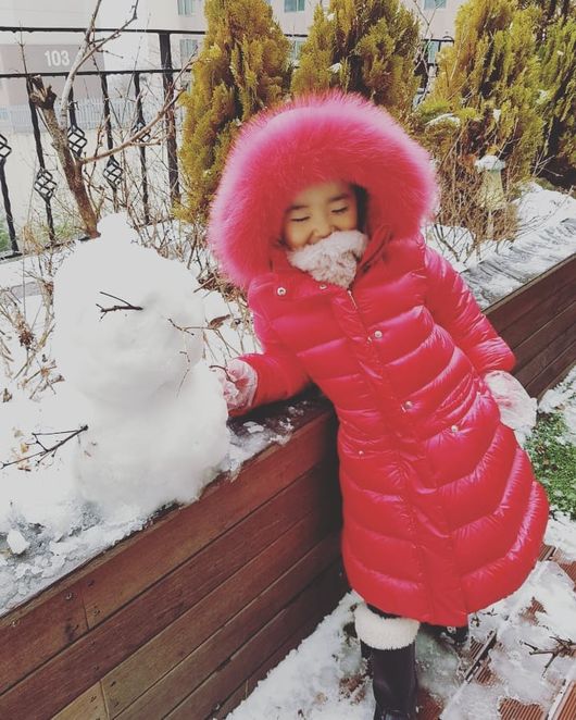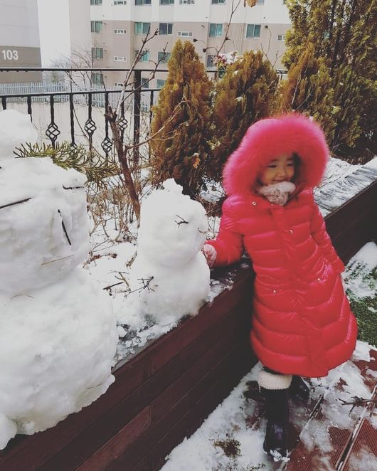 공개된 사진 속 하은 양은 눈사람 옆에서 포즈를 취하고 있다. 하은 양은 핑크색이 포인트인 패딩 점퍼와 털 부츠로 추위에도 끄떡없는 패션을 보여줬다.