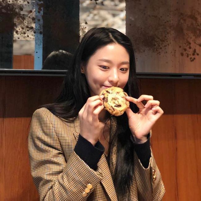 공개한 사진 속 설현은 양 손가락으로 쿠키를 집어들고 웃어 보이는 중이다. 사진을 찍고 있는 것을 의식하는 듯한 설현의 표정은 귀여움을 더한다.