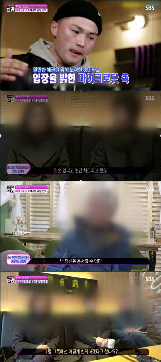 합의한 피해자들도 있지만 합의하지 않은 피해자들도 있다. 합의하지 않은 피해자들은 여전히 마이크로닷 부모에 대한 분노를 감추지 못했다. 합의하지 피해자 중 한명은 “잘못했다고 하더라. 내 20년을 돌려주면 용서하겠다고 했다. 자기 자식을 위해서 합의해야한다고 하더라. 그러면 우리 자식들은 뭐냐. 우리 자식들도 부모 잘 못 만나서 하고 싶은 것 못하고 살았다”고 분노를 표현했다.