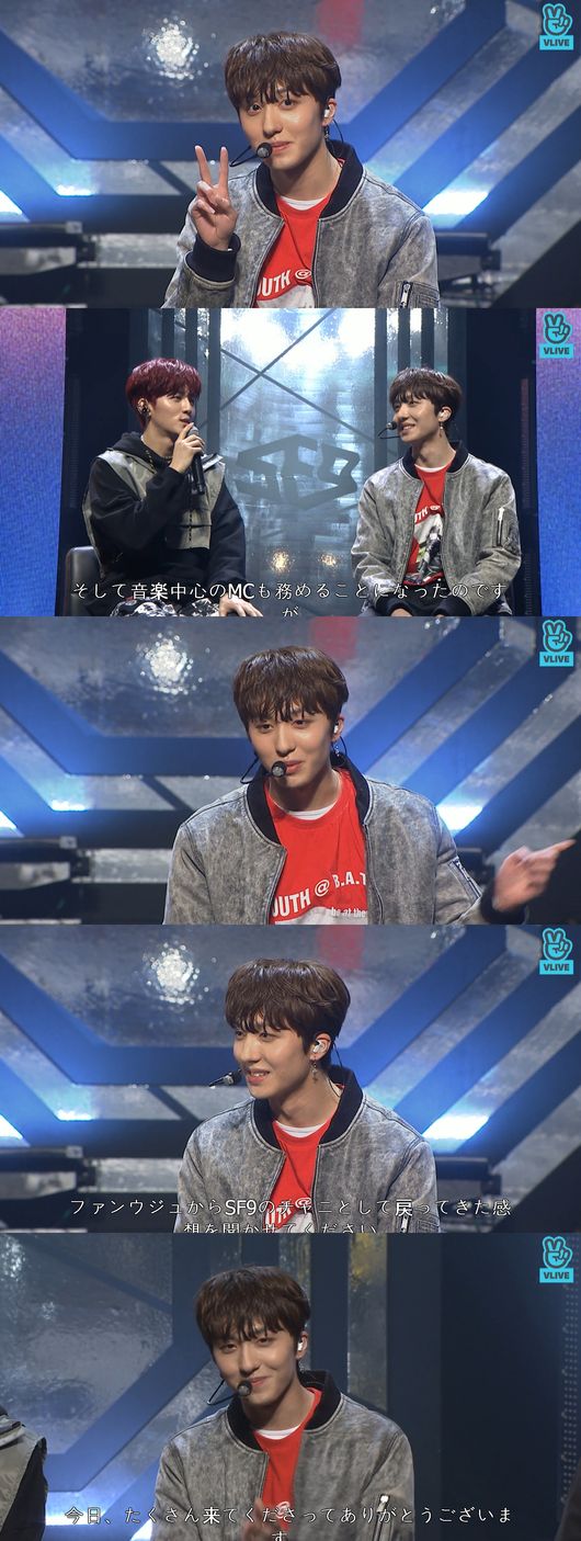 이날 SF9 멤버들은 각자 소개를 시작, 특히 "오늘 주호가 함께 하지 못해 아쉽다, 수록곡에 참여하고 응원해주고 있다"고 전했다.