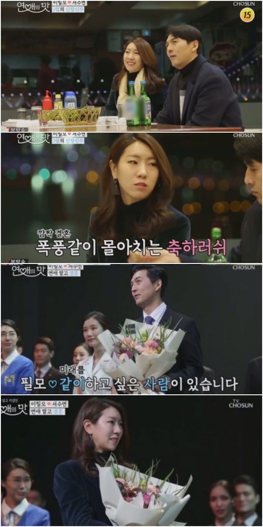 이필모와 서수연은 지난해 9월 16일 첫 방송된 TV조선 예능 '연애의 맛'에서 인연을 맺었다. 제작진이 매칭한 두 사람은 서로를 배려하며 급속도로 가까워졌고, 이필모는 서수연에게 정식으로 만남을 제안하며 공개 연애를 즐겼다. 그리고는 지난해 12월 25일 크리스마스날, 둘은 공식적으로 결혼을 발표했다.