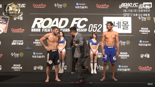 ROAD FC (로드FC)는 22일 그랜드 힐튼 서울에서 굽네몰 ROAD FC 052 계체량 행사를 진행했다. 대회에 출전하는 모든 선수들이 모여 체중을 측정하고, 경기 출전에 대한 소감을 전했다.