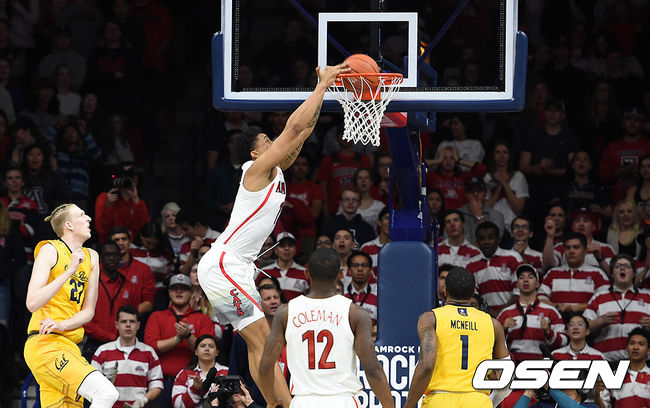 리는 후반전에도 애리조나의 핵심 빅맨으로 활약했다. 그는 신장은 작지만 뛰어난 탄력으로 리바운드를 잘 잡았다. 다만 겹겹이 쌓인 수비수 사이로 무모하게 파고드는 단점도 보였다. 이날 리는 6점, 4리바운드, 3파울로 경기를 마쳤다. / jasonseo34@osen.co.kr