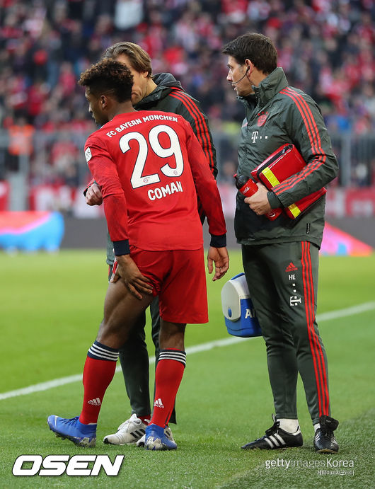 뮌헨은 귀중한 승리에도 웃지 못했다. 측면 자원 코망이 또 부상 덫에 걸렸다. 후반 13분 프랑크 리베리를 대신해 그라운드를 밟았지만 단 9분 만에 아웃됐다. 왼쪽 햄스트링에 부상을 입은 코망은 절뚝거리며 피치를 빠져나갔다.