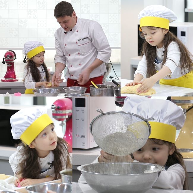그런가 하면 나은이는 고사리 손으로 조물조물 반죽을 만들거나 야무지게 체로 밀가루를 치는 등 베이킹에 열중하고 있다. 눈을 초롱초롱 빛내며 미카엘의 설명을 듣는 나은이가 흐뭇한 미소를 자아낸다.