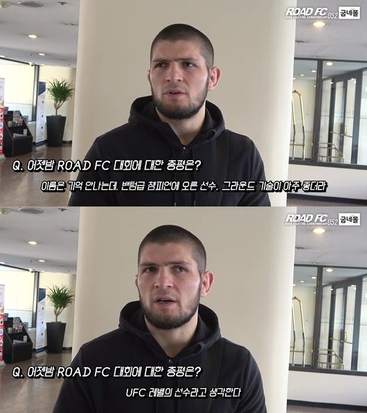 대회가 종료된 다음날 누르마고메도프는 출국하기에 앞서 ROAD FC 오피셜과 인터뷰를 진행했다. 누르마고메도프는 ROAD FC 밴텀급 챔피언 김민우를 언급하며 기량을 칭찬했다. “밴텀급 챔피언에 오른 선수의 그라운드 기술이 아주 좋더라. UFC 레벨의 선수라고 생각한다. 물론 샤밀과 만수르 경기도 명경기였다. 좋은 대회였다.”