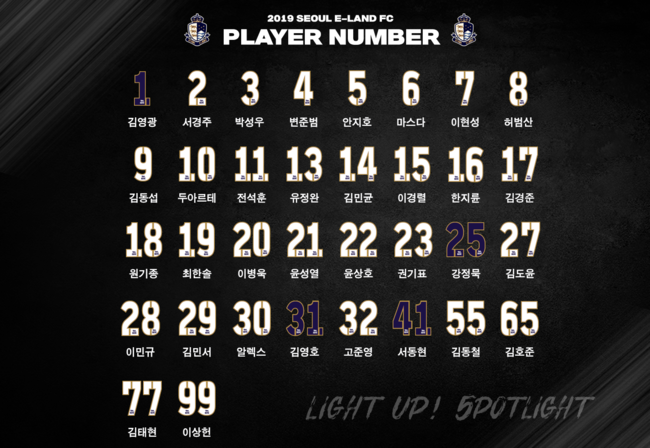 서울 이랜드 FC는 25일 2019시즌 선수단 배번을 발표했다.
