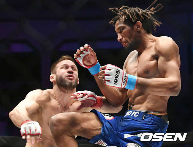 만수르 바르나위는 23일 서울 장충체육관에서 열린 굽네몰 ROAD FC 052에서 ‘하빕 사촌형’ 샤밀 자브로프를 플라잉 니킥으로 실신 시키며 승리했다.