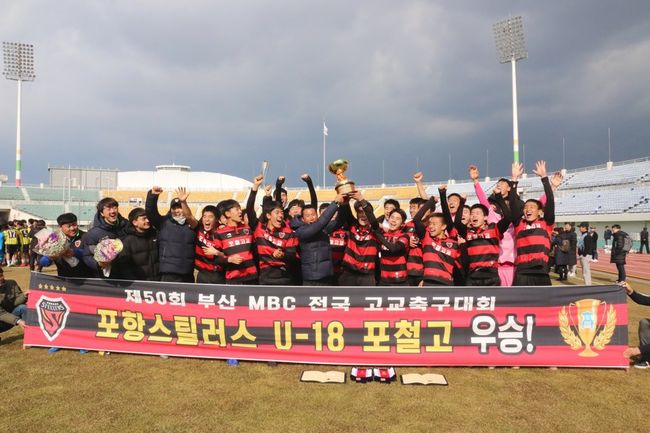 포항 U-18 유스팀이 우승의 바통을 이어받으며 방점을 찍었다. 제50회 부산MBC 전국고등학교 축구대회에 출전한 포항 U-18 포항제철고는 수원공고, 울산 현대고를 연파한 후 지난 23일 결승전서 과천고 마저 2-0으로 꺾으며 정상에 올랐다. 포철고는 총 6경기서 11득점 1실점을 기록하는 안정된 경기력을 보여주었다. 백기태 감독이 감독상, 도재경이 최우수 선수상, 고영준이 공격상, 김동현이 GK상을 수상하며 개인상 부문도 휩쓸었다. 또한 가장 파울이 적고 깨끗한 경기를 보여준 팀에 수여되는 페어플레이상까지 수상해 결과와 내용을 모두 잡았다.