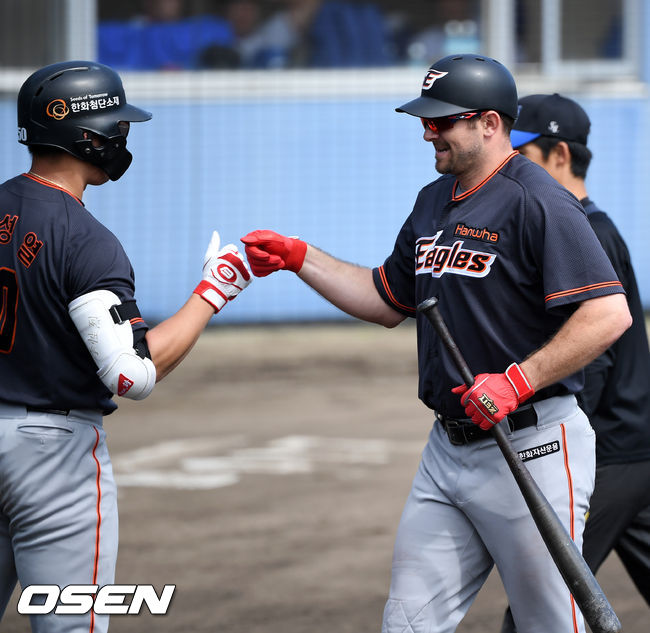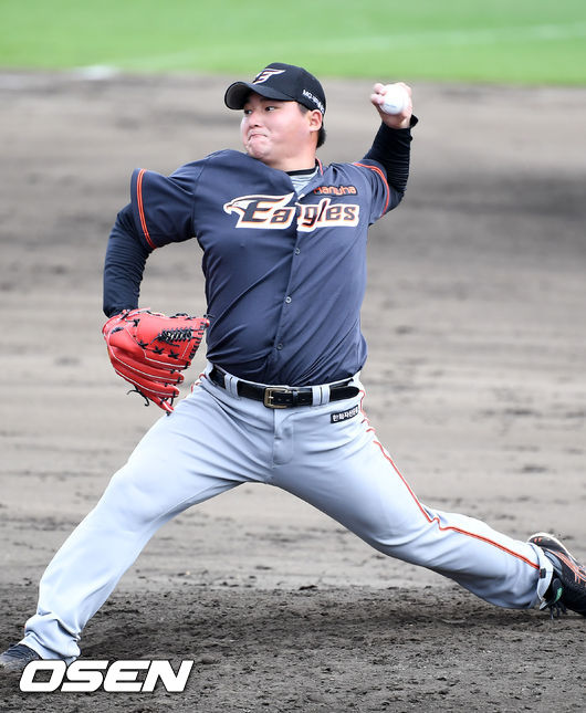 한화는 워윅 서폴드가 첫 실전 등판을 마쳤다. 3이닝 3피안타(1피홈런) 1볼넷 1탈삼진 2실점을 기록했다. 그리고 두 번째 투수 박주홍은 3이닝 1피안타 2볼넷 3탈삼진 무실점으로 호투를 펼쳤다. 타선에서는 호잉이 솔로포, 최진행이 3점포를 터뜨리는 등 15점을 폭발시키며 연습경기 첫 승을 자축했다. /jhrae@osen.co.kr